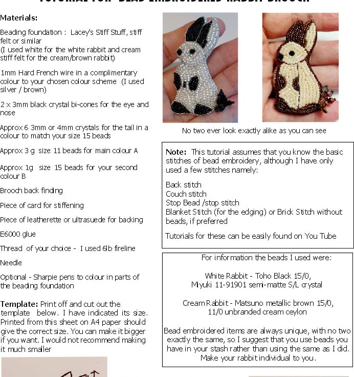 Bead Embroidery Tutorial - Rabbit Brooch.