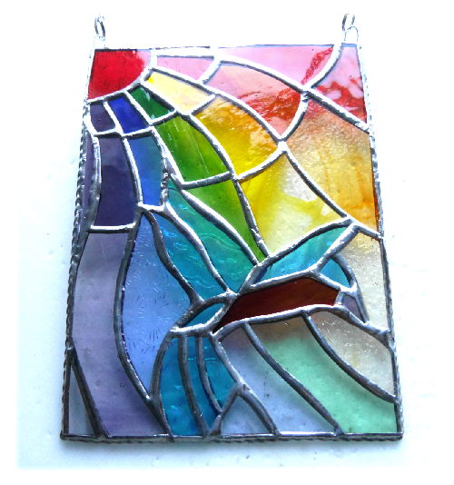 This version is Tiffany copper foiled not leaded and is a smaller version at 5.5 x 7.5 inches. It is designed to hang as a suncatcher in the window. This is the 19th I have made and I absolutely love it.