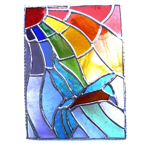 It comprises 36 pieces of individually cut glass in all colours of the rainbow and I've used a big variety of different textures to give it lots of movement.