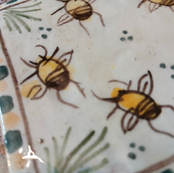 Medieval tiles were highly prized decorative objects for posh houses and halls. Bees were a popular motif, said to be wise and bringers of good fortune.