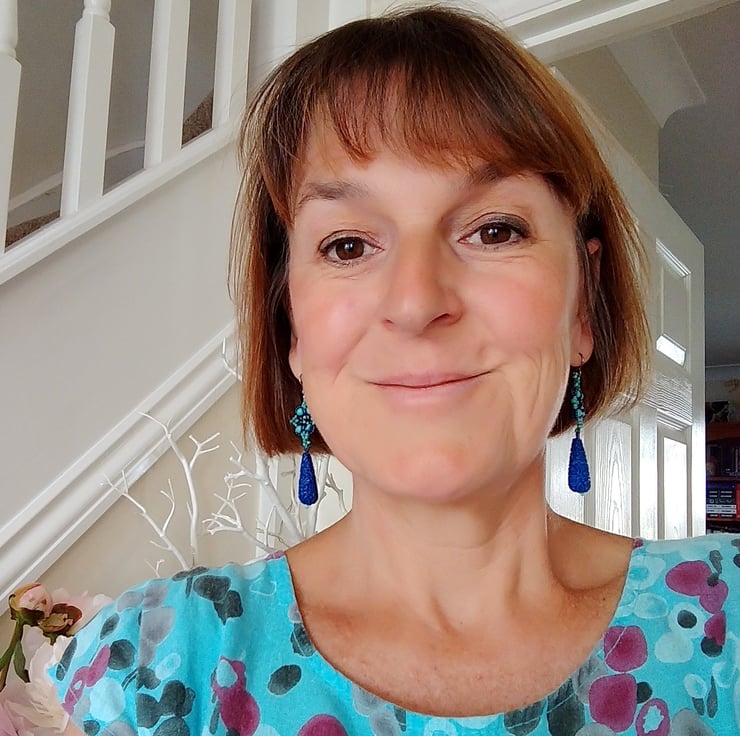 The overall “drop” of each earring is approximately 7 cm from where the earwire sits on the earlobe – I hope that makes sense! I am wearing my own navy and turquoise pair in the final photo to give you an idea of length. The resin component itself measures approximately 27 mm x 10 mm and the beaded square 25 x 25 mm.
