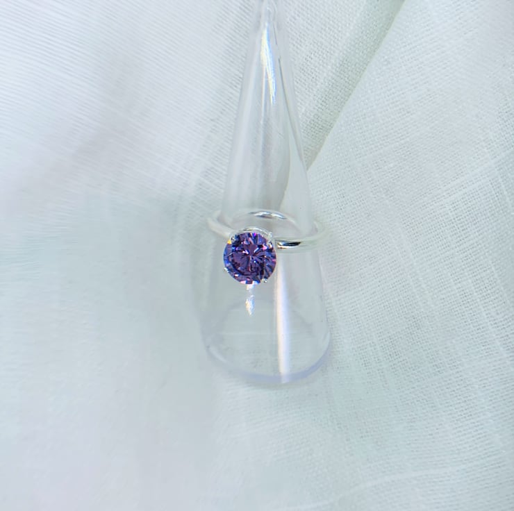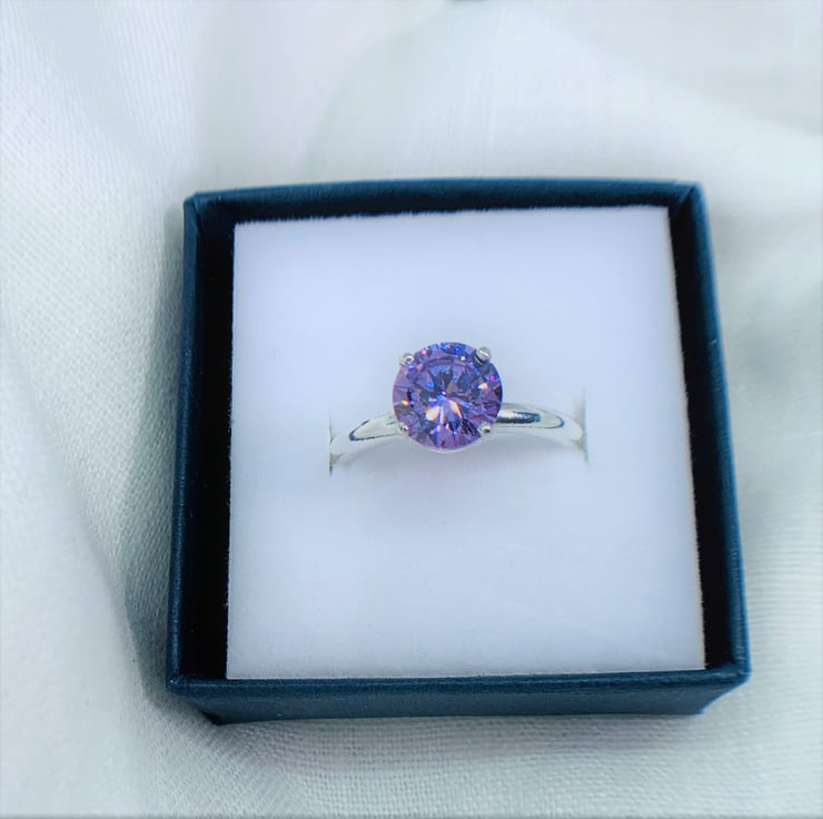 Make a statement with this beautiful light purple cubic zirconia cocktail ring.