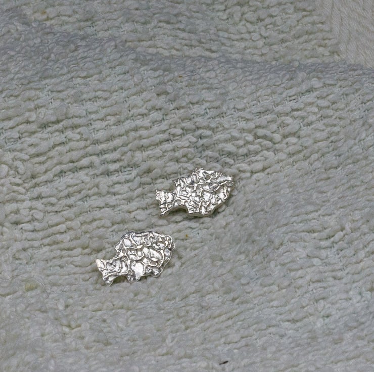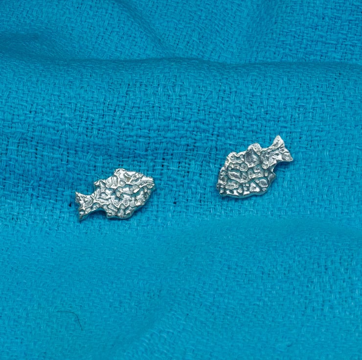 These stud earrings, in the shape of fish, were hand crafted using the silver clay technique. They have embossed with a crackle pattern and measure 15mm from mouth to tail of the fish.