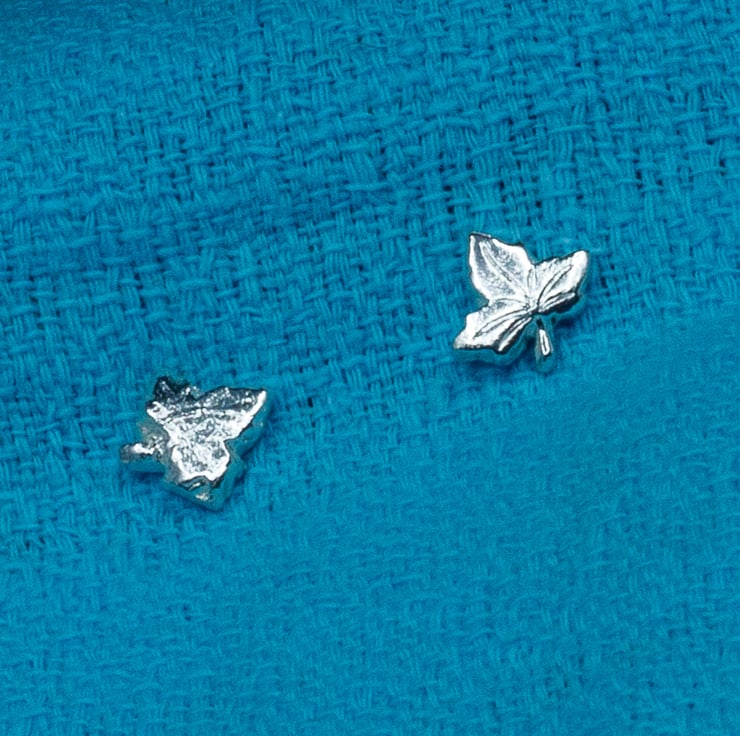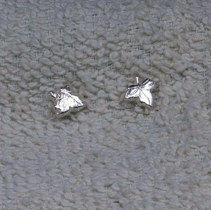These stud earrings, in the shape of a leaf, were hand made using the silver clay technique. The measure approximately 9mm at their widesr point.