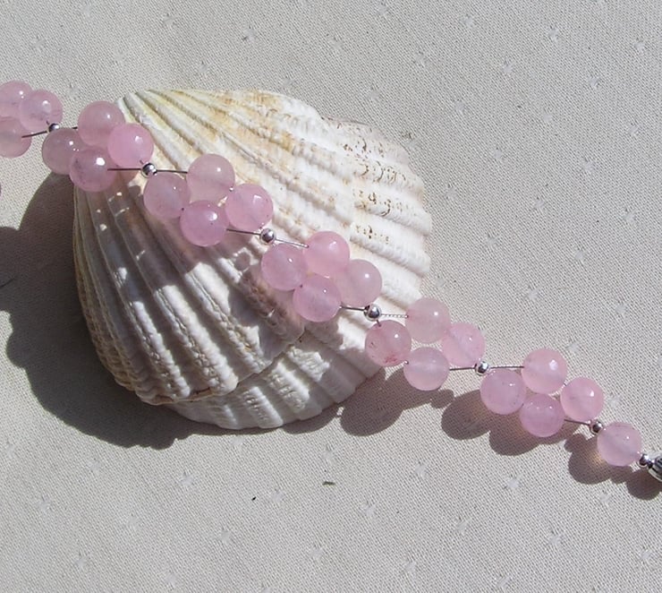 This Stunning Bracelet is made wholly from Rose Quartz round beads clustered together in four's and for that added bit of sparkle tiny Silver spacer beads - a Dazzling effect that will look stunning either worn casually or with something more Elegant for a Special Evening out