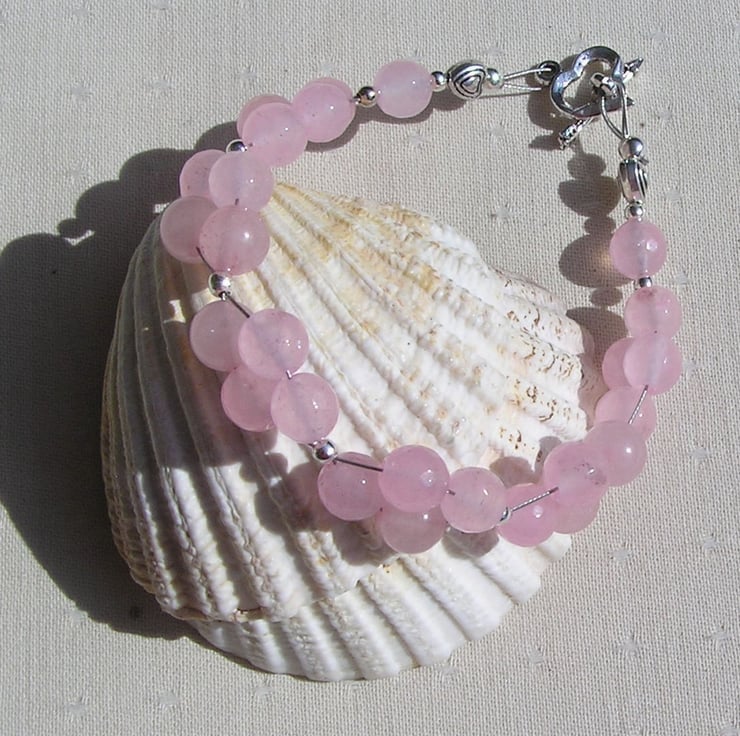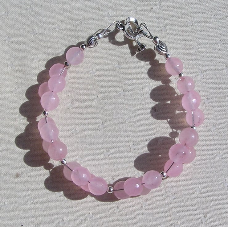 This Stunning Bracelet is made wholly from Rose Quartz round beads clustered together in four's and for that added bit of sparkle tiny Silver spacer beads - a Dazzling effect that will look stunning either worn casually or with something more Elegant for a Special Evening out