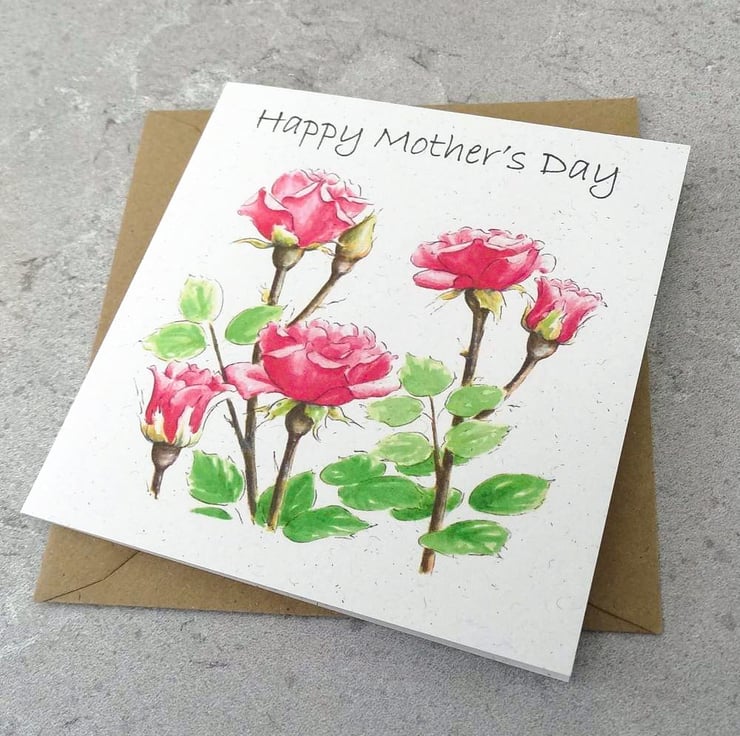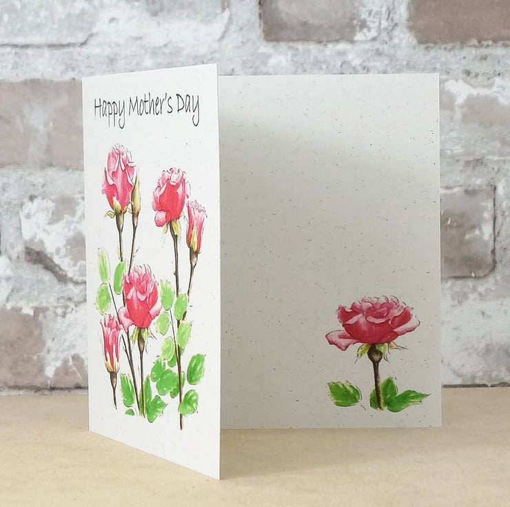 My ecofriendly Pink Rose Mother's Day card has been printed using my original artwork on to 100% recycled oatmeal card which has lovely flecks as you can see in photograph above.