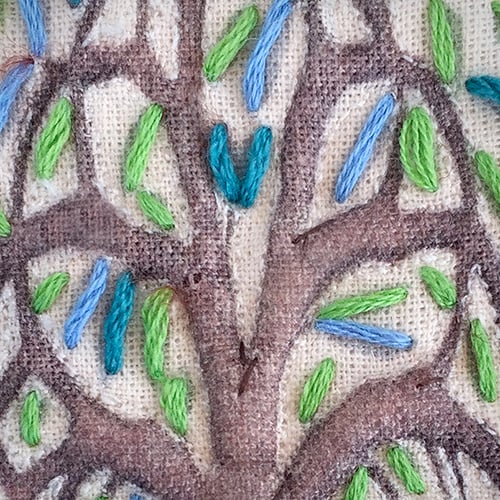 Willow, Tree of Life, hand embellished, textile print - stitched and framed in a tin, with a loop to hang it up