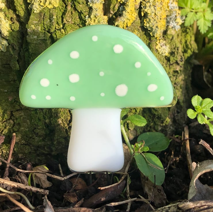 The Glass Mushrooms are hand cut and hand painted so each one is unique glass Size 6cm x 5cm .