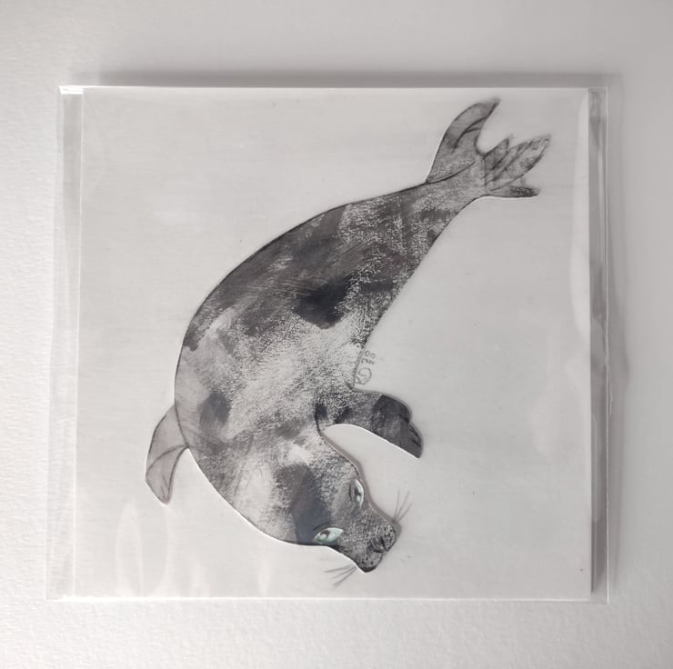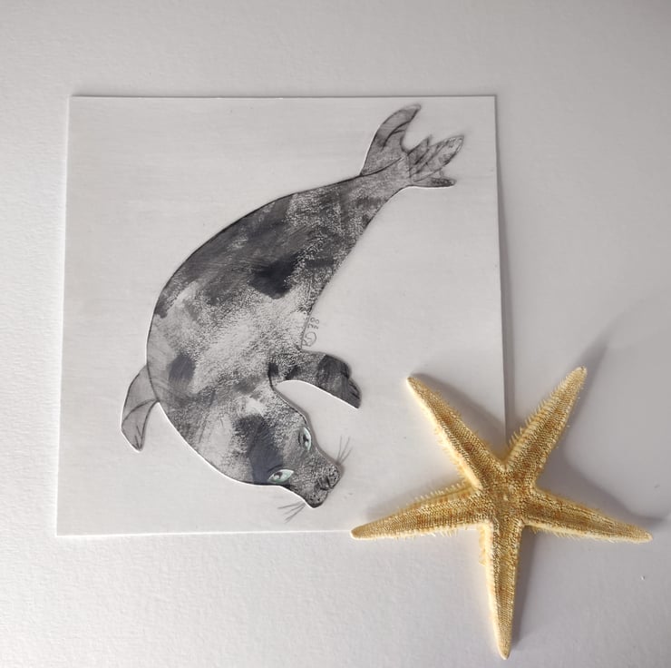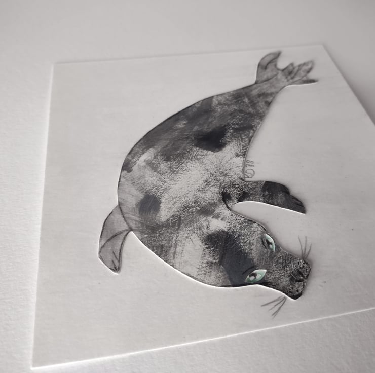 A perfect little art gift for seal lovers Not a print but an original picture made from hand painted collage paper. A simple piece for anyone looking for handmade seaside decor.