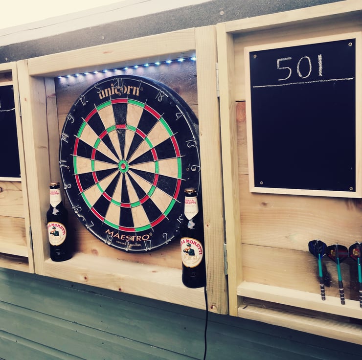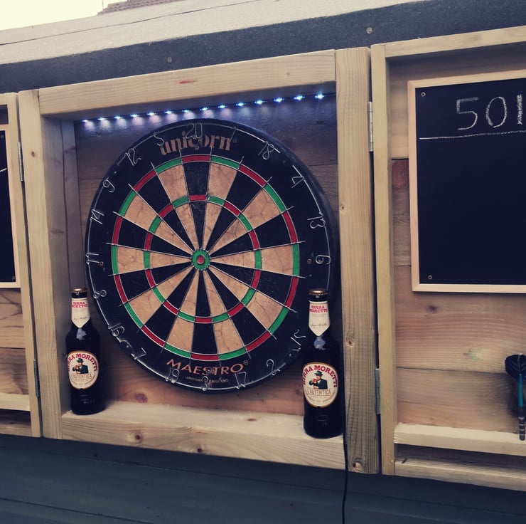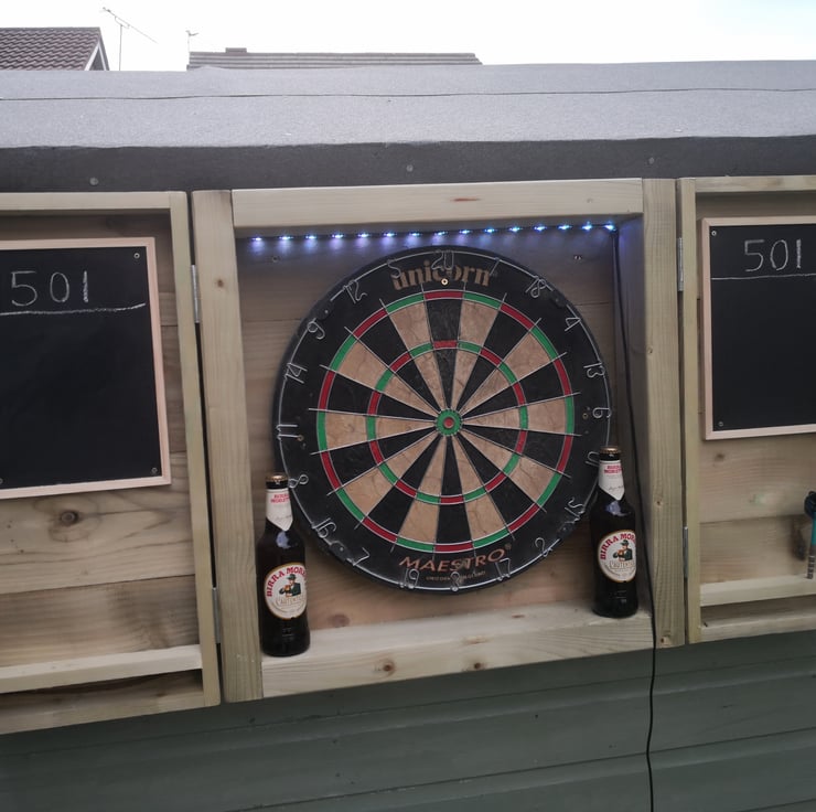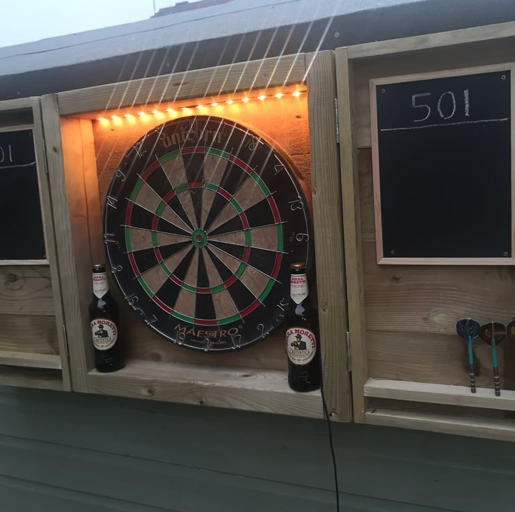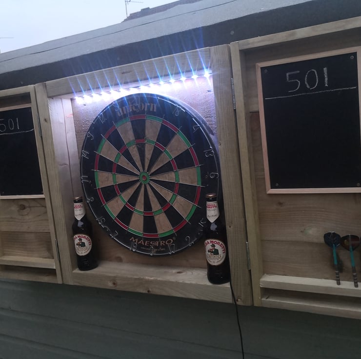 Our new dartboard cabinet, made from new tanalised treated timber, making it perfect for outdoor use. It's a great addition to your garden bar over the summer months, and lots of fun!! Game on!!