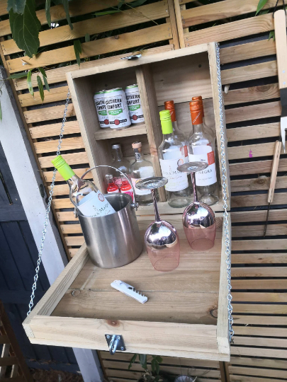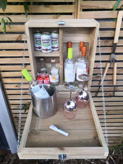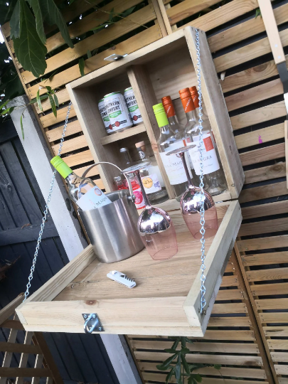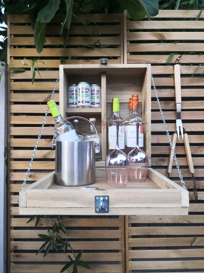 A small micro drop down bar that goes great next to the BBQ or Hot Tub, although small, it can still hold up to 10 bottles/cans. It is 45cm tall x 40cm wide.
