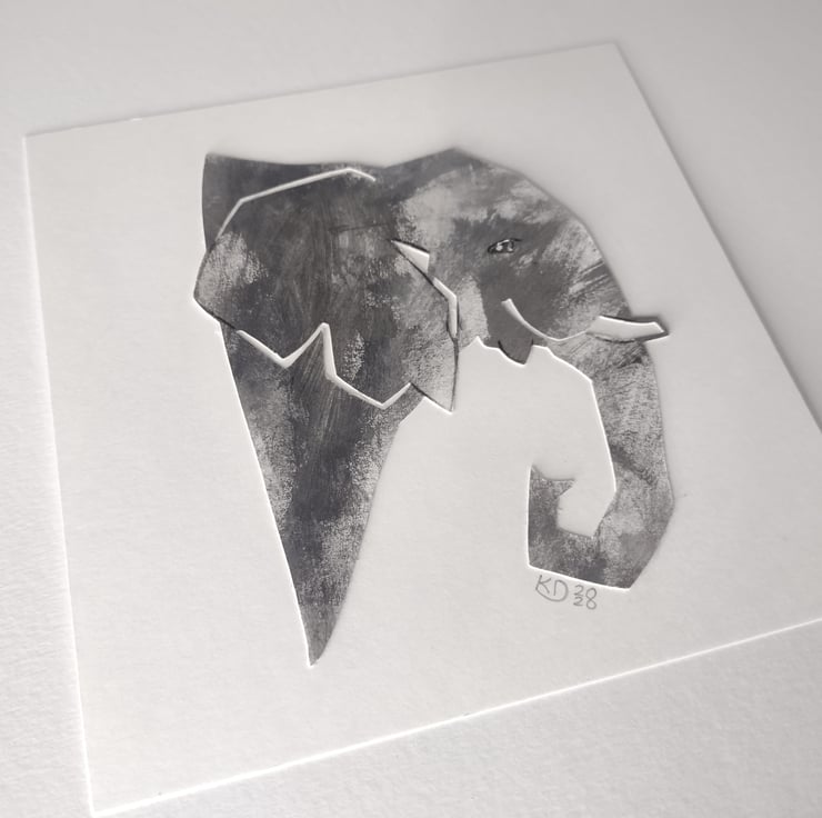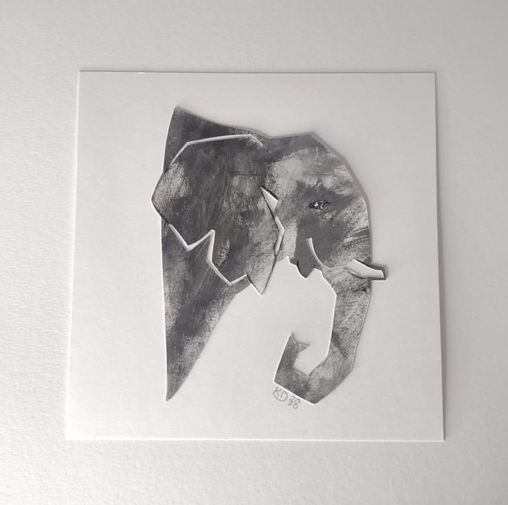 Snipped from hand painted collage paper and presented on card. Unframed, giving you the option to pick out a frame and mount that suits you best. The Elephant cut paper collage is an original made just for you and isn't a print, so it's a perfect piece of art if you want to bring something with a homemade touch into your home.