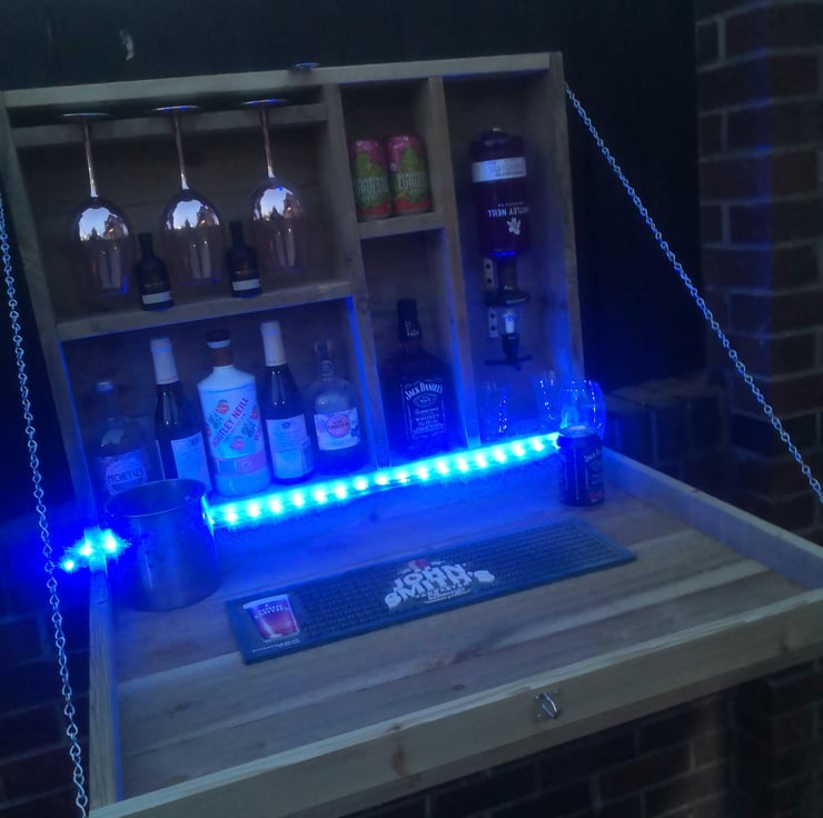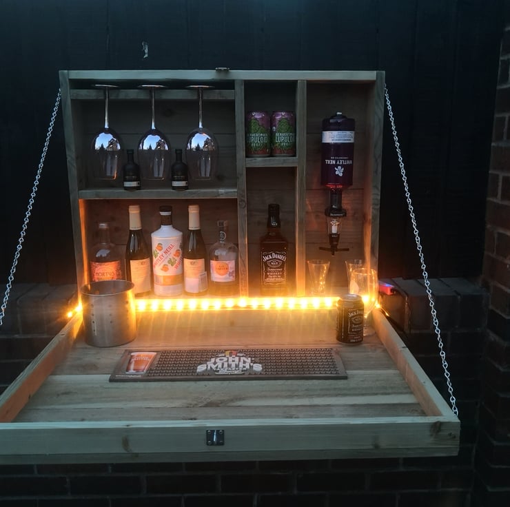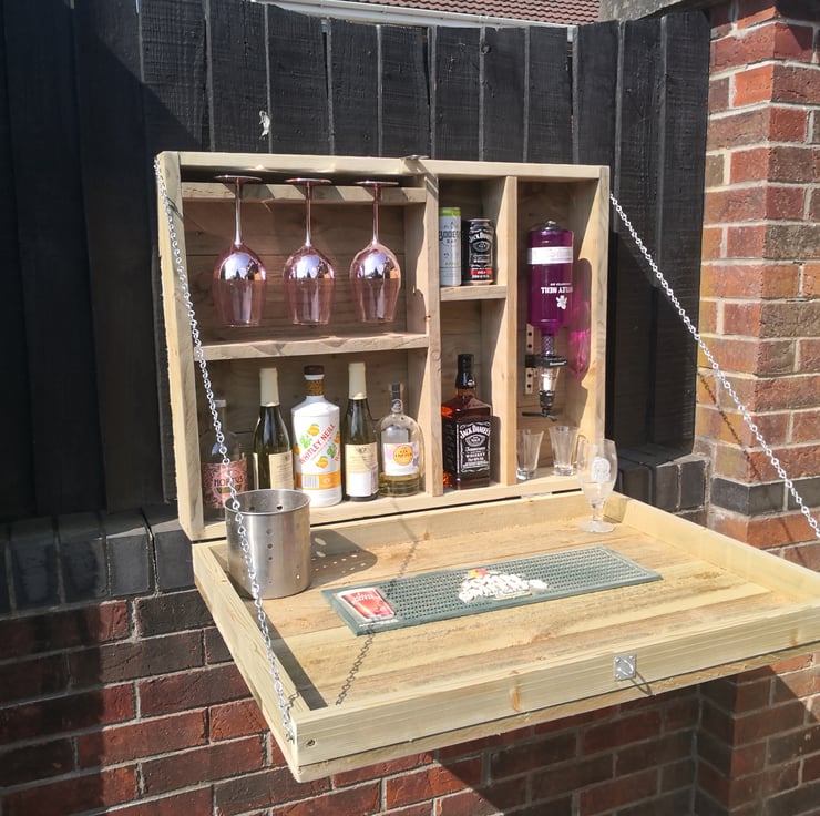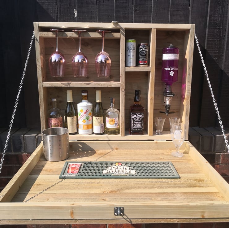 A lovely sized garden wall bar with ample storage for most types/size of bottle. Measuring 80cm wide x 60cm tall complete with 1 x 25ml Optic and fixing bracket.