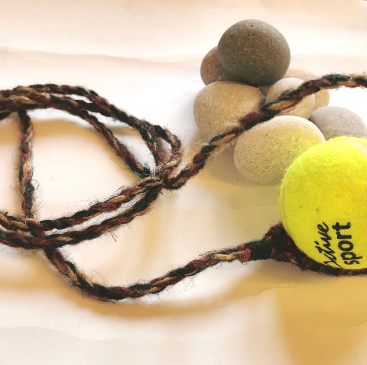 This item is a handmade traditional style shepherds sling designed to throw tennis balls, or your dogs favourite toy (can also be used as a stone sling at own risk)