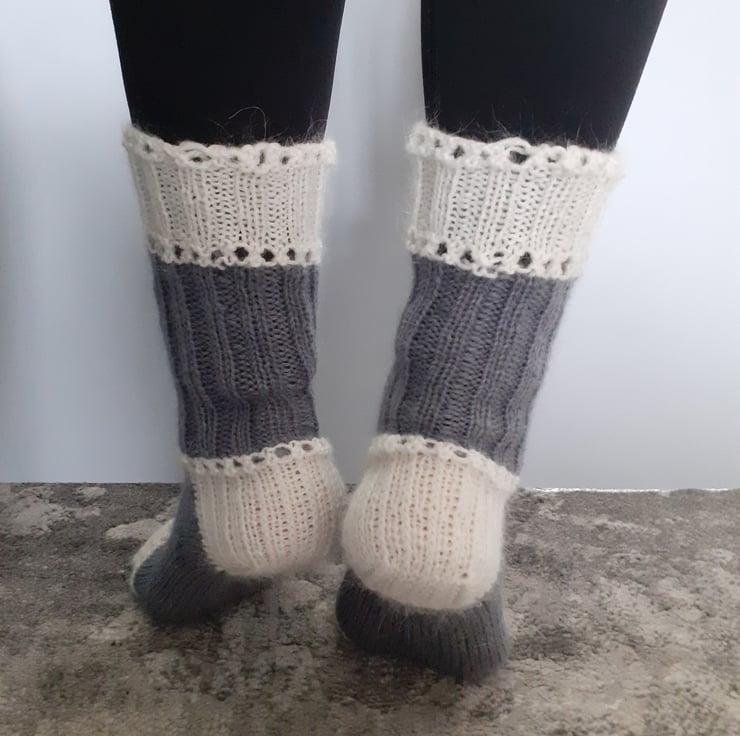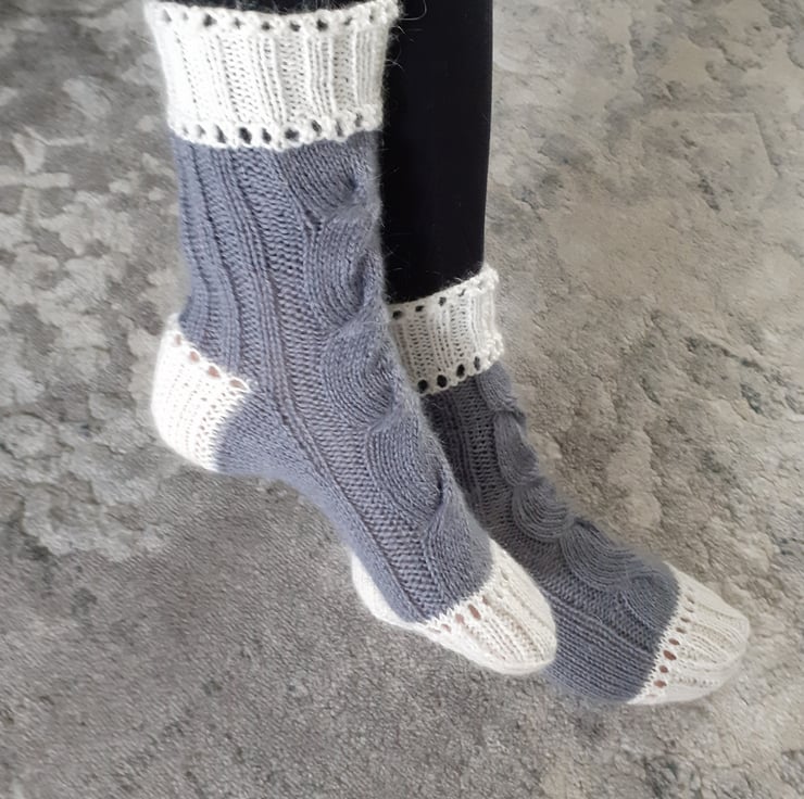 Socks knitted with an openwork pattern,