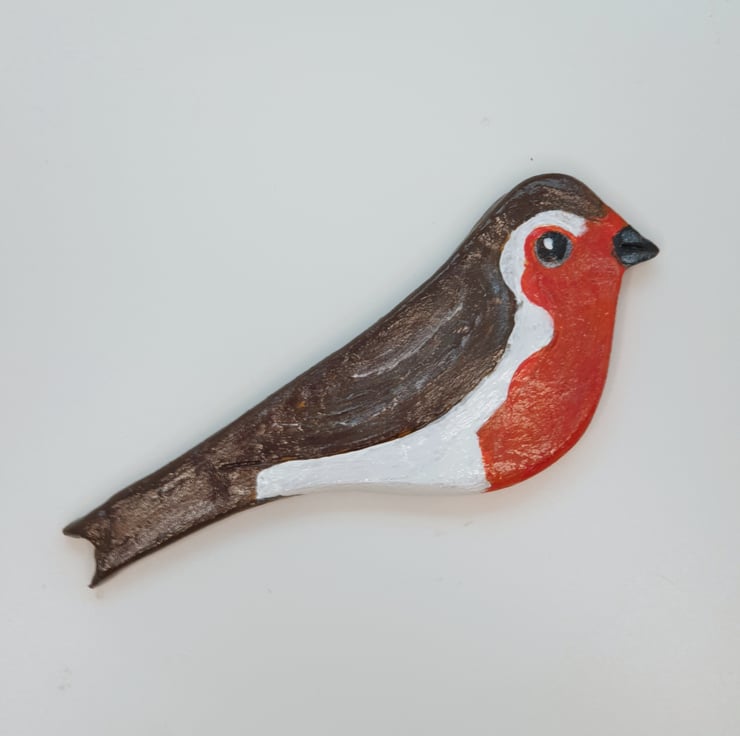 As my clay magnets are all individually made from clay and hand painted the one supplied may differ slightly from the photo as no 2 robins will be identical.