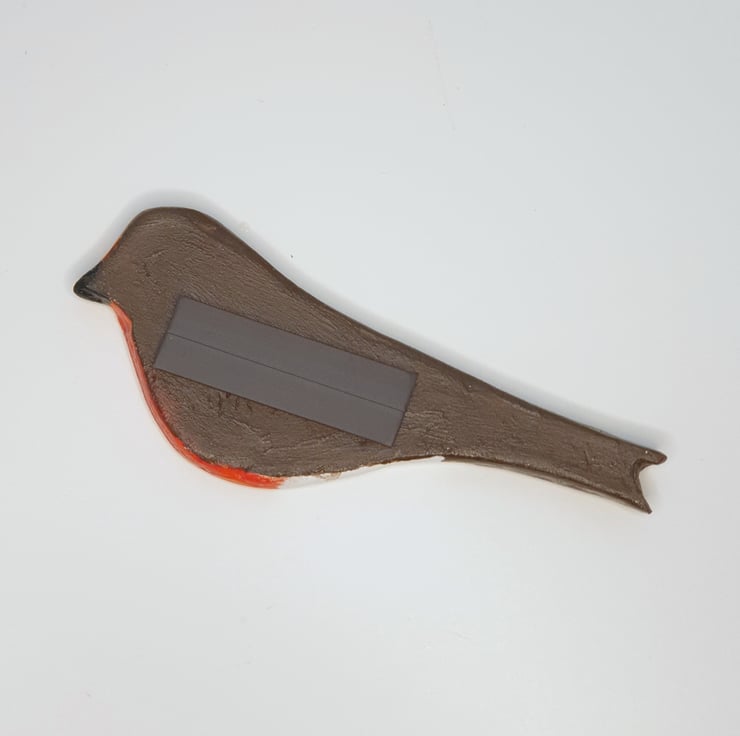Lovely hand painted robin fridge magnet which would make a sweet stocking filler gift for a bird lover. This little robin has been lovingly created from air dry clay, painted with acrylics and then sealed with varnish. A strong magnet has then been added to the back. This little robin would make a great addition to your kitchen fridge or can be attached to any surface with magnetic properties.
