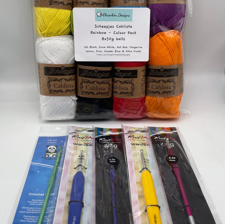 Also you can purchase a crochet hook to go with these beautiful cotton yarns. Please see drop down box for your options. Depending on your tension there are options for both 4.5 mm & 5 mm crochet hooks.