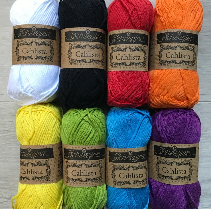 In this 400g pack of yummy colours, there are 8 x 50g balls of Scheepjes Cahlista.