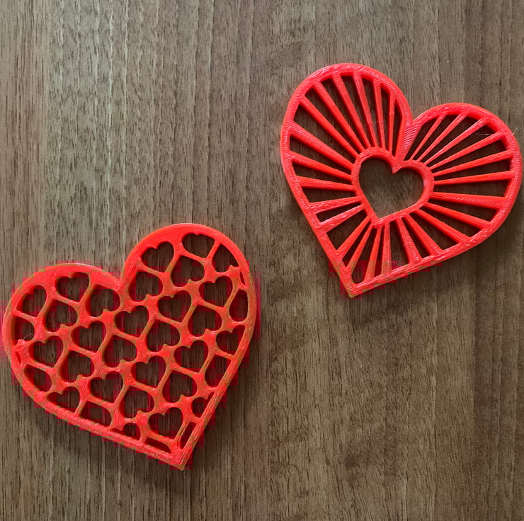 3D printed Heart coaster set of 2 made from PLA plastic.