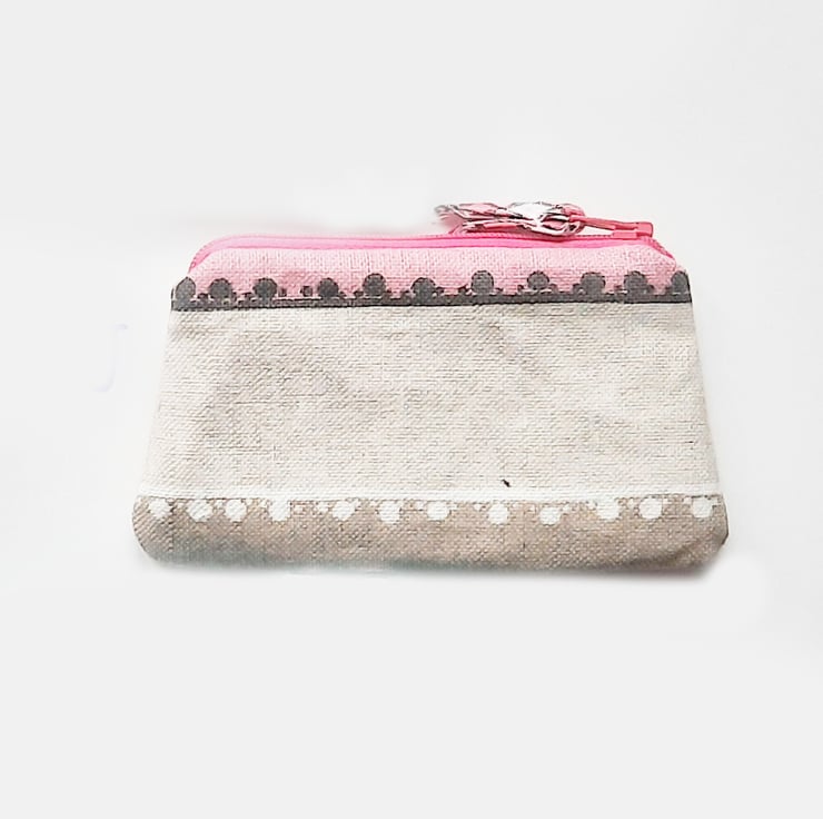 As soon as you open one of my purses you'll get a burst of colour! This one is pink check, and there's and pink zip too! The zip even has a little tag made with the same pink fabric.