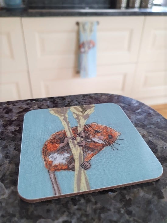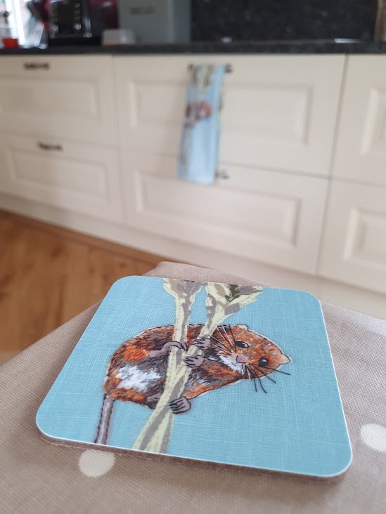 The designs are scanned by my local printer, and digitally printed onto coasters, placemats, tea towels, tote bags and greetings cards. I also make handmade cards and beautiful hanging decorations for your home.