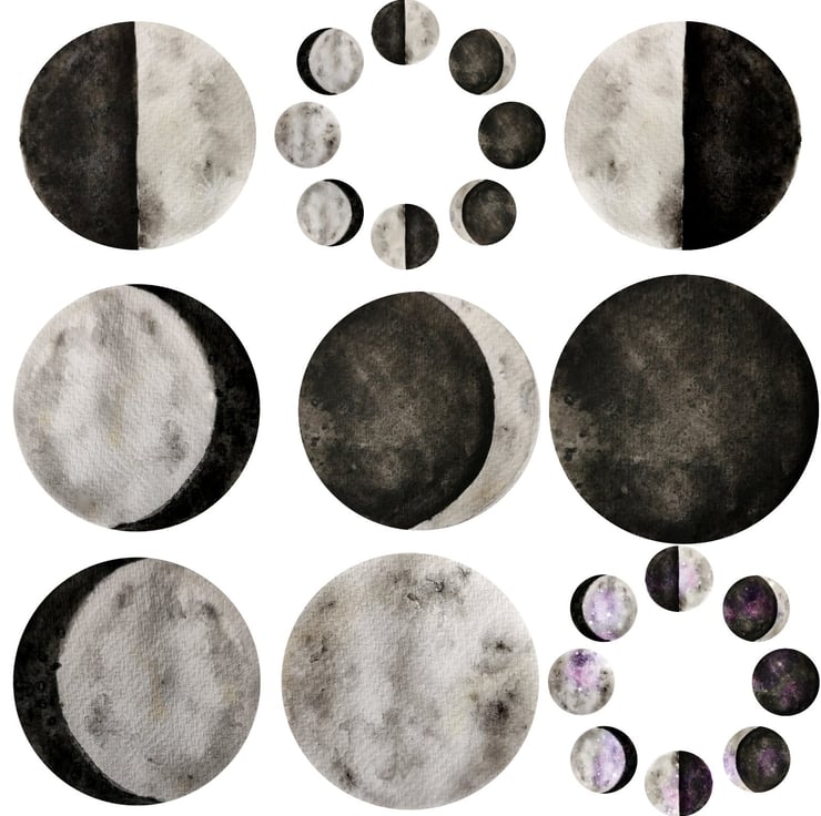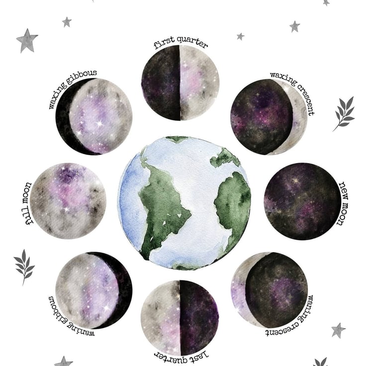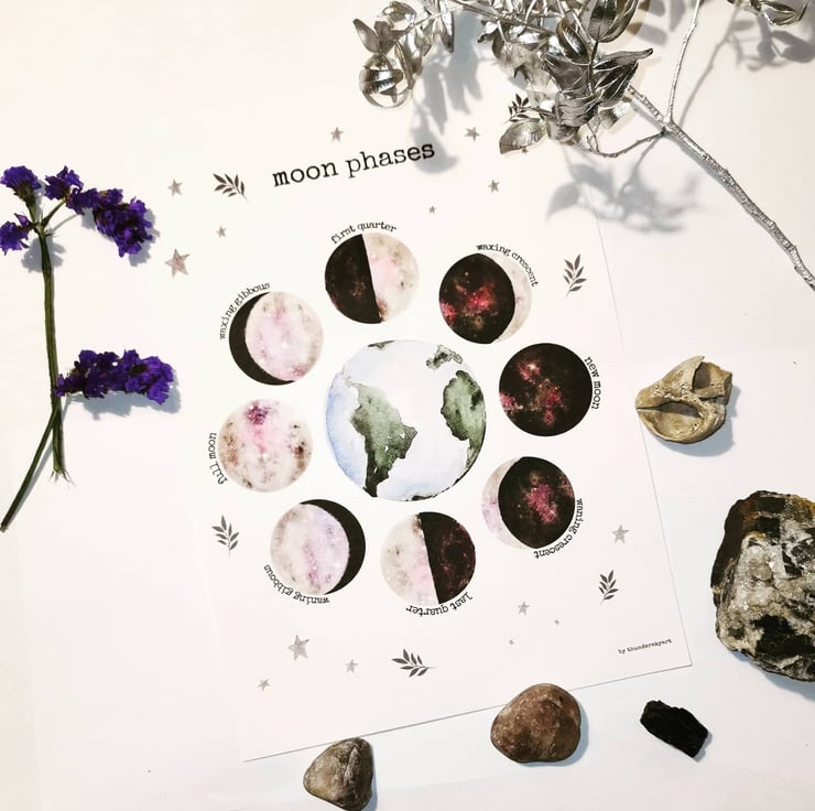 This is a print of my original watercolour moon phase paintings.