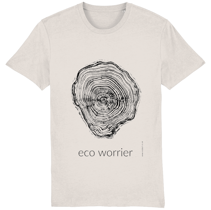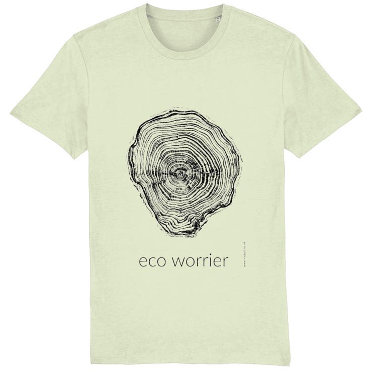 Wearing some of my tree ring designs, either plain or combined with ECO messages gives the wearer a beautiful image and practical garment that also highlights what we all need - to consider and act on the biggest challenge to our planet. Whilst the purchase of a T-shirt might seem to add to overall consumption, we do need new clothes from time to time so one that is grown using organic cotton, sustainably farmed with growers proctected and uses minimally toxic inks that is made just one at a time as people need them seems a fair compromise.