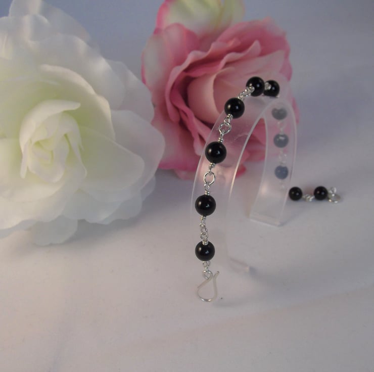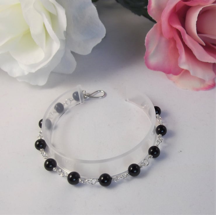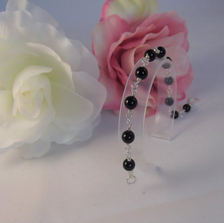This stunning Onyx gemstone bracelet features wire wrapped links and a recycled silver hook and eye clasp.