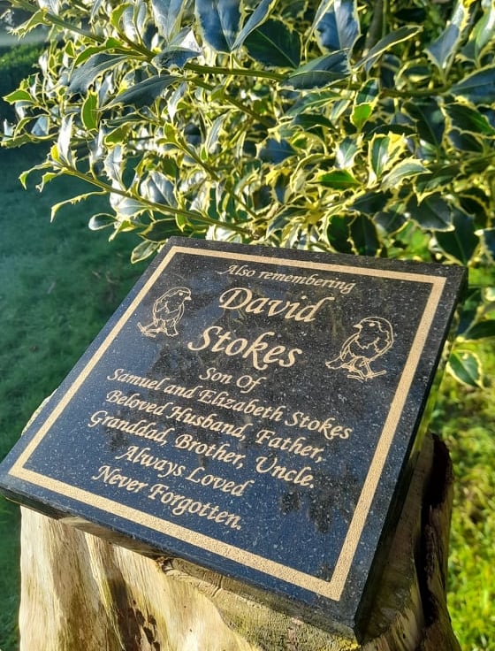 The granite is laser engraved by our state of the art machinery. You may also have a Rose, Dove or Robin engraved on the plaque.