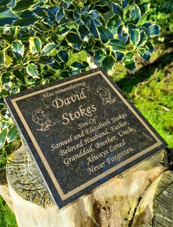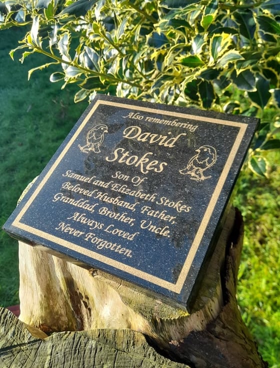 The granite is laser engraved by our state of the art machinery. You may also have a Rose, Dove or Robin engraved on the plaque.
