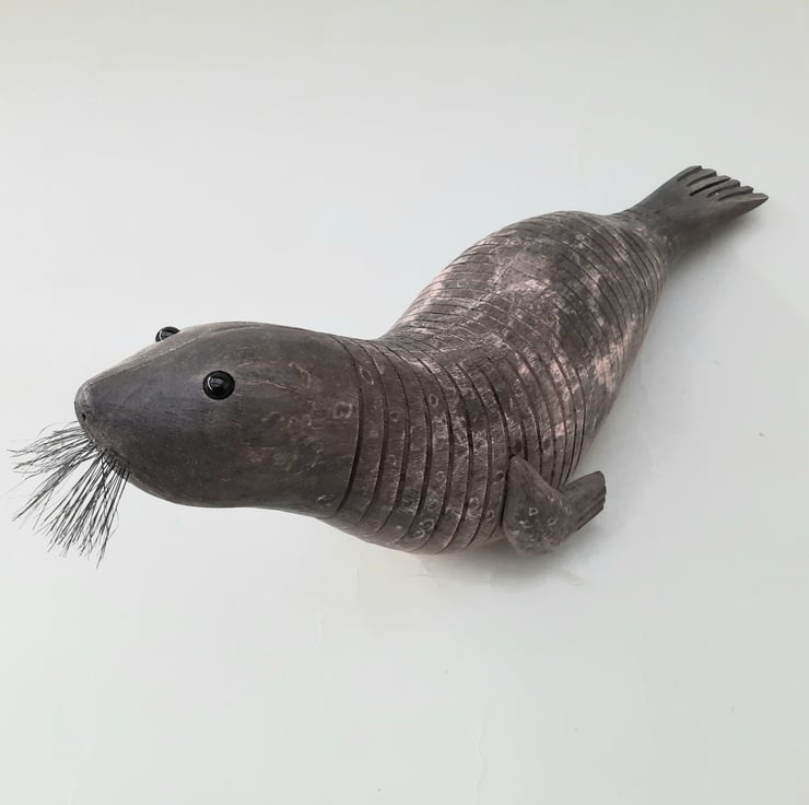 40 cms. Nose-to-tail articulating seal in beech.