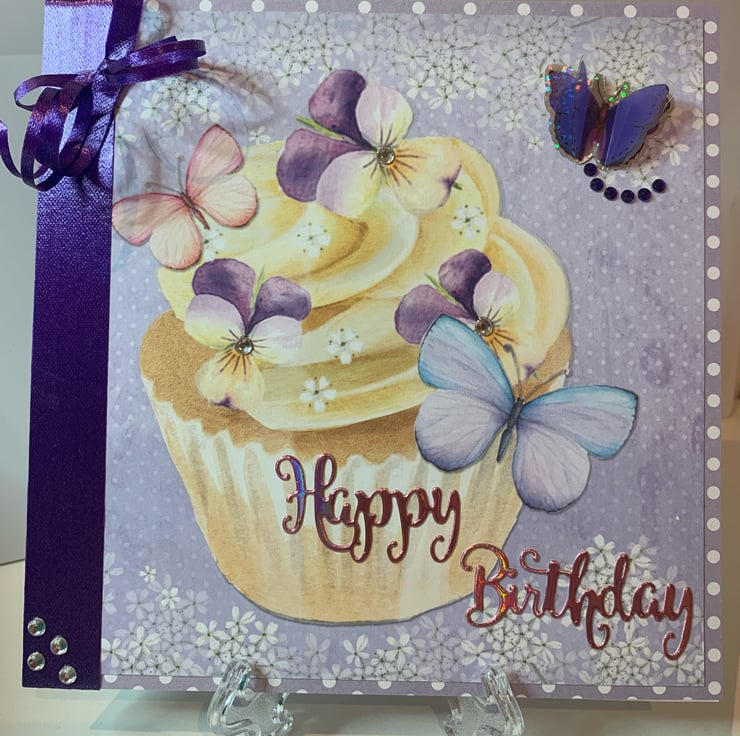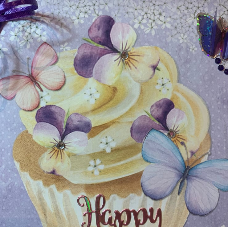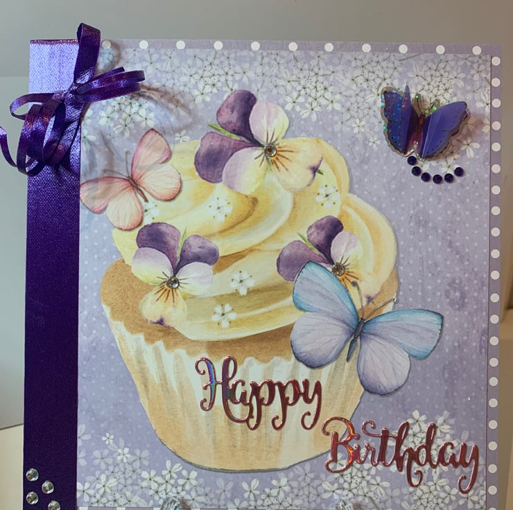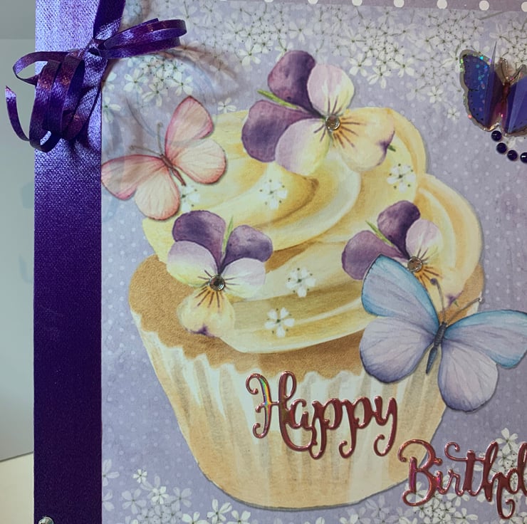 Pretty purple Birthday Card featuring butterflies & flowers