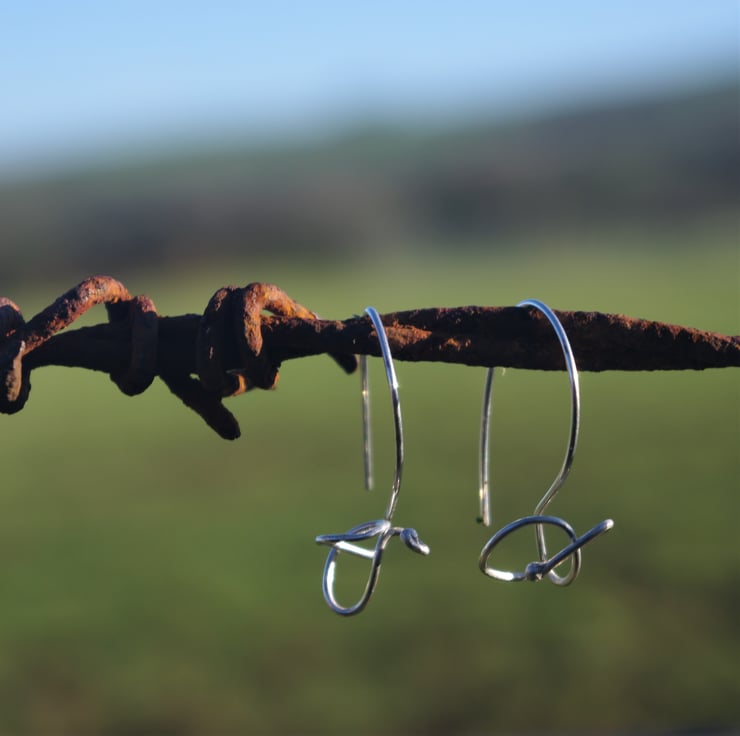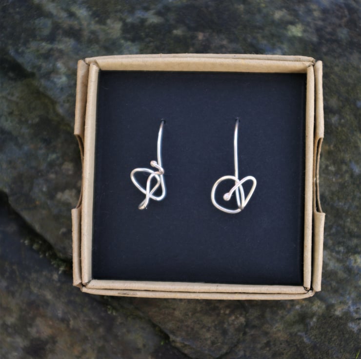 Silver squiggle dangle earrings made from eco sterling silver 0.7mm wire ( slightly thinner than the other pair)