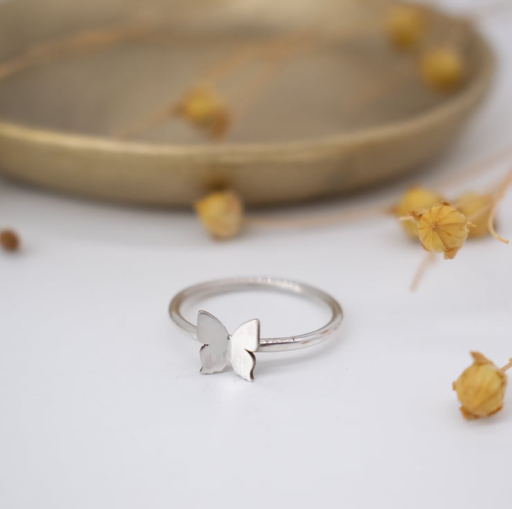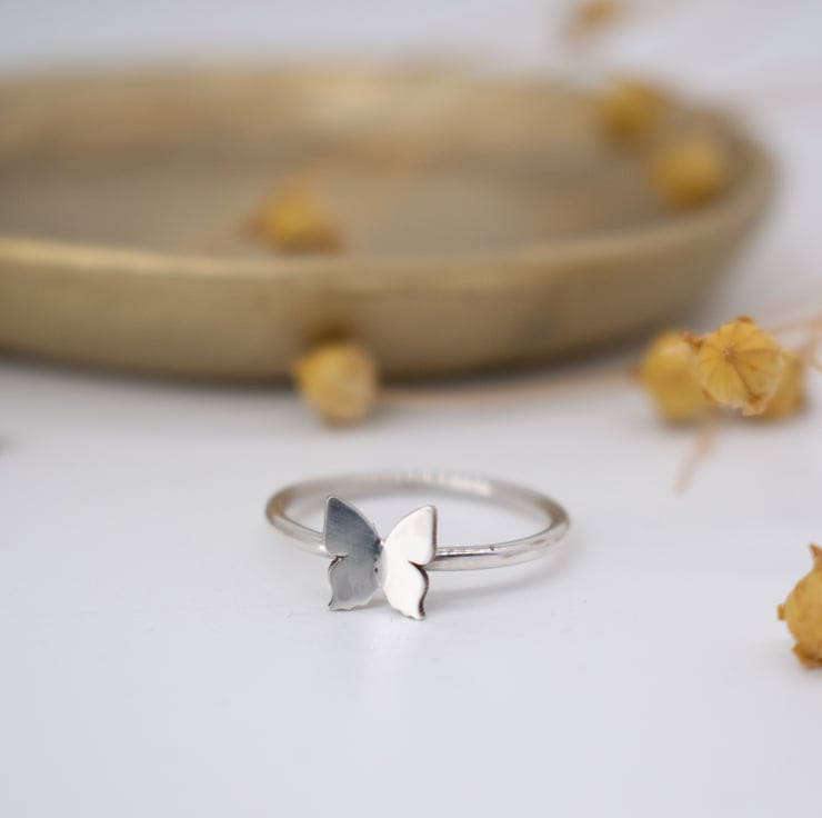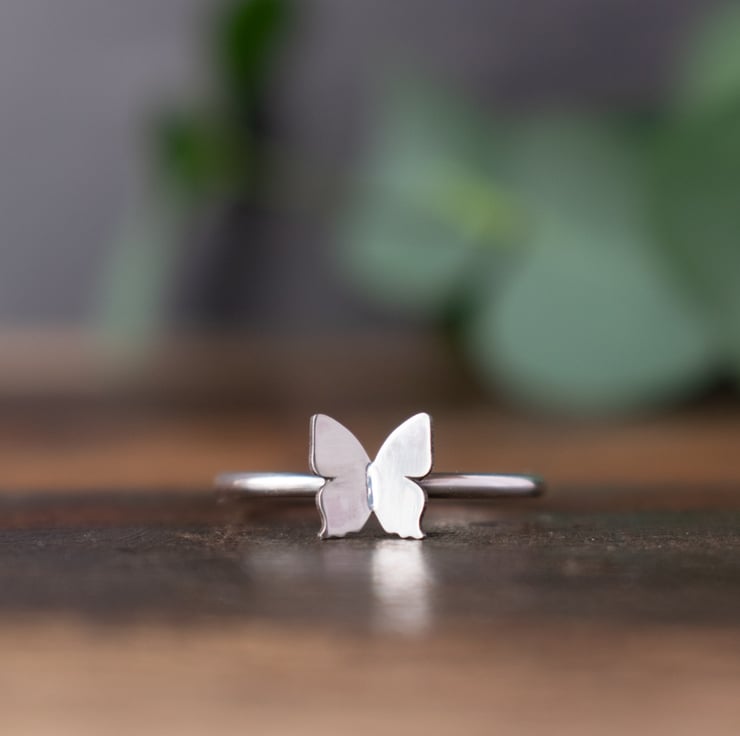 Beautifully simple sterling silver ring with 3D butterfly embellishment. Wear alone for minimalist style, or stack with my other rings to create a boho layered look.