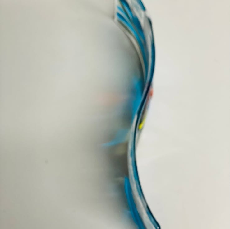 Fused glass sailing boats in colourful fused glass make this stand up ornament perfect for that person who loves to sail . Approximately 3.5 inch high x 12 inch long . There is nothing defective about this product . It was a sample for a larger piece