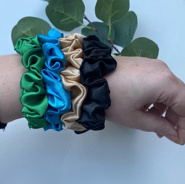 These hand crafted beautifully silky Scrunchies keep your hair back while keeping your hair healthy!
