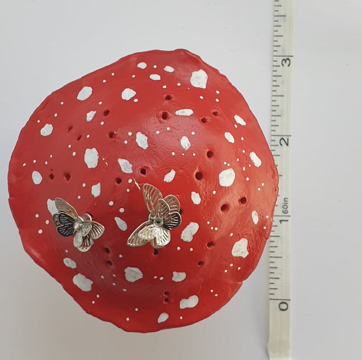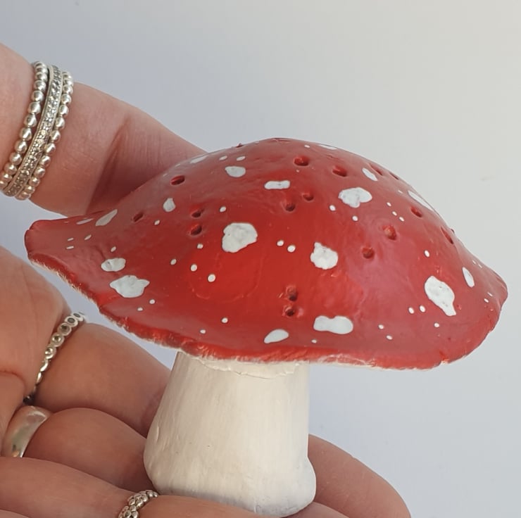 This fun and quirkly little mushroom is handmade in air dry clay is a little earring holder. Holding up to 14 pairs of stud earrings - A lovely gift for someone who likes to display their jewellery in something unique and different.