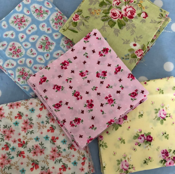A pretty selection of 40 gorgeous fabrics in 11 cm squares ideal for patchwork quilts, cushions and sewing projects