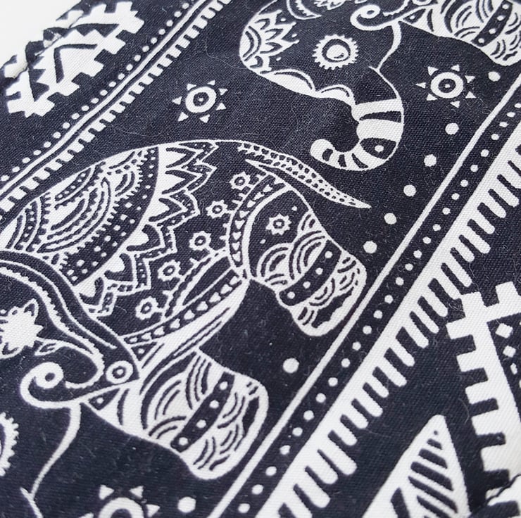 The outer fabrics are cotton. The inside is recycled wool. It makes the sleep masks so soft and comfortable, and did you know that wool has cooling properties - no more sweaty face as a result of a sleep mask that's got plastic fibres!