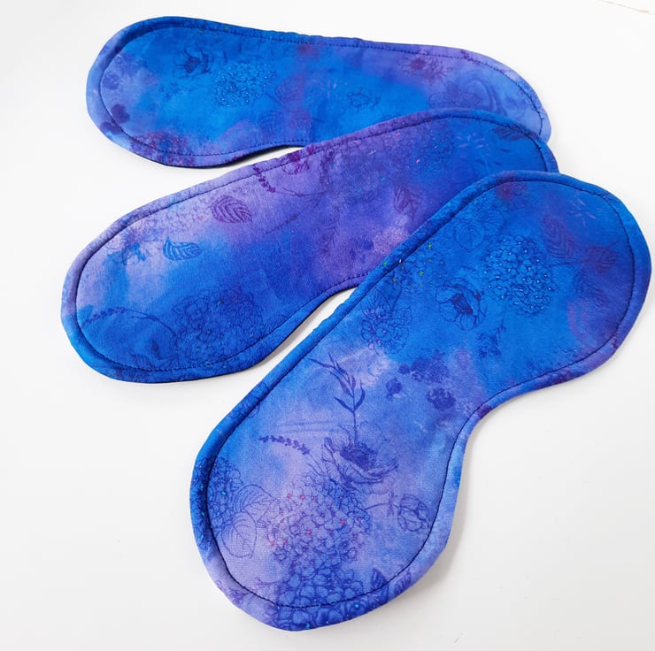The outer fabrics are cotton. The inside is recycled wool. It makes the sleep masks so soft and comfortable, and did you know that wool has cooling properties - no more sweaty face as a result of a sleep mask that's got plastic fibres in!