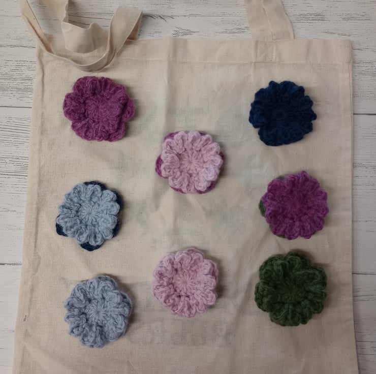 This is a light weight flower brooch, crocheted from luxury alpaca yarn.