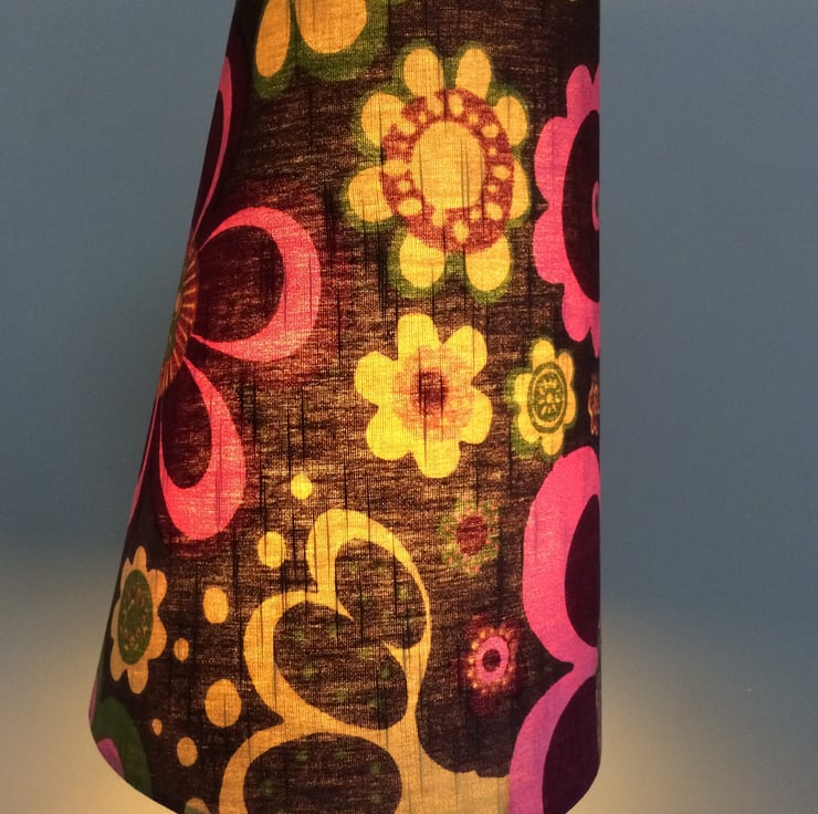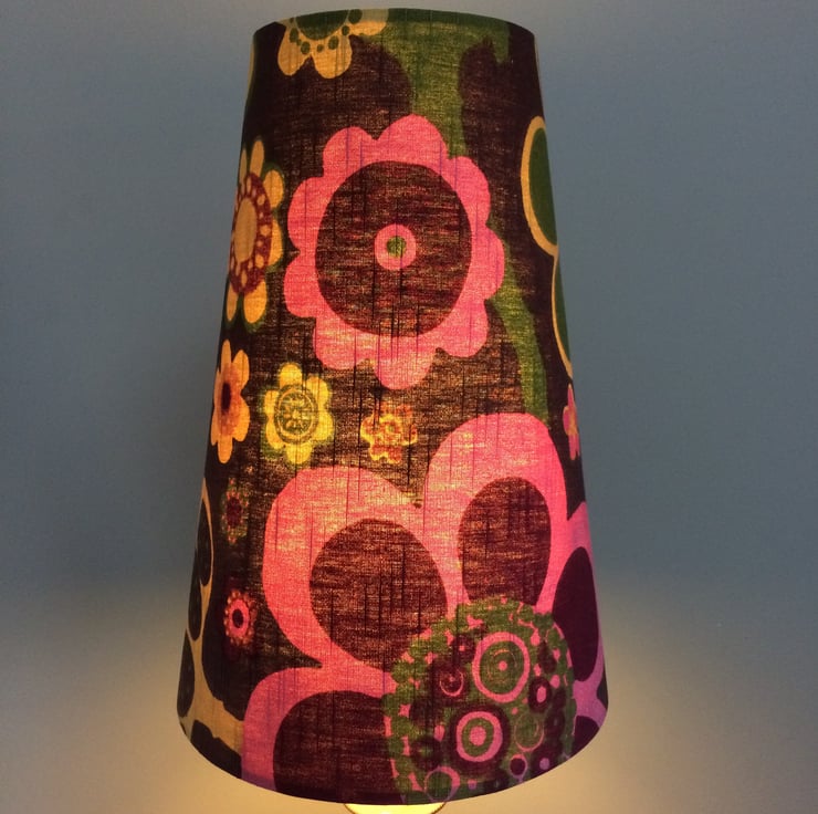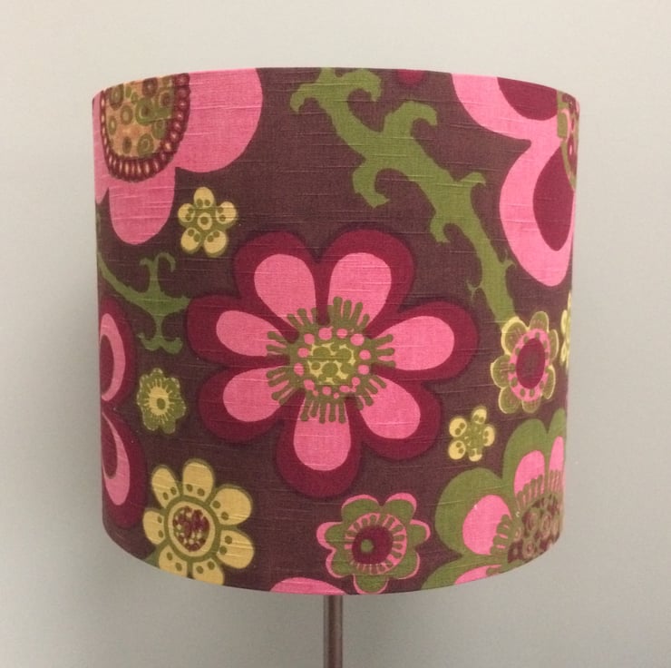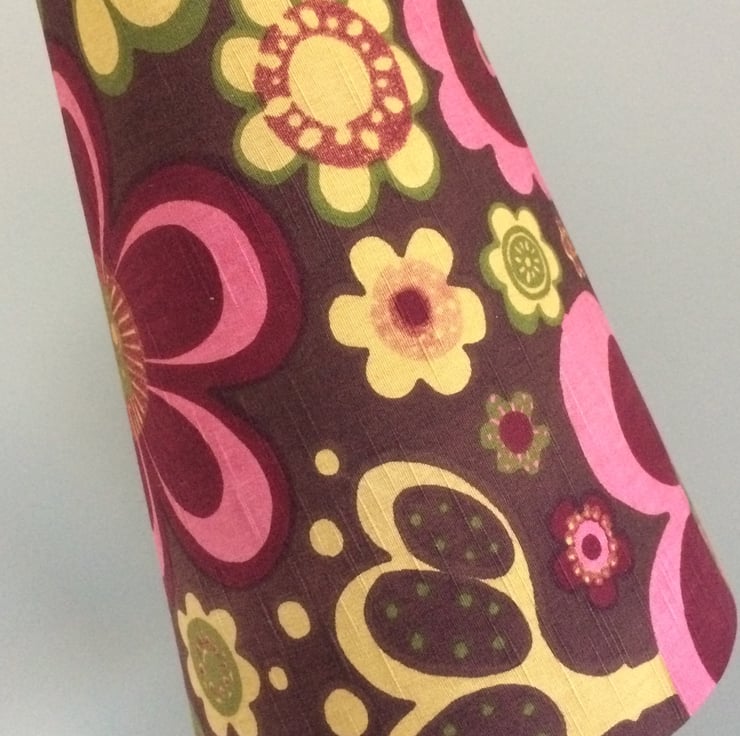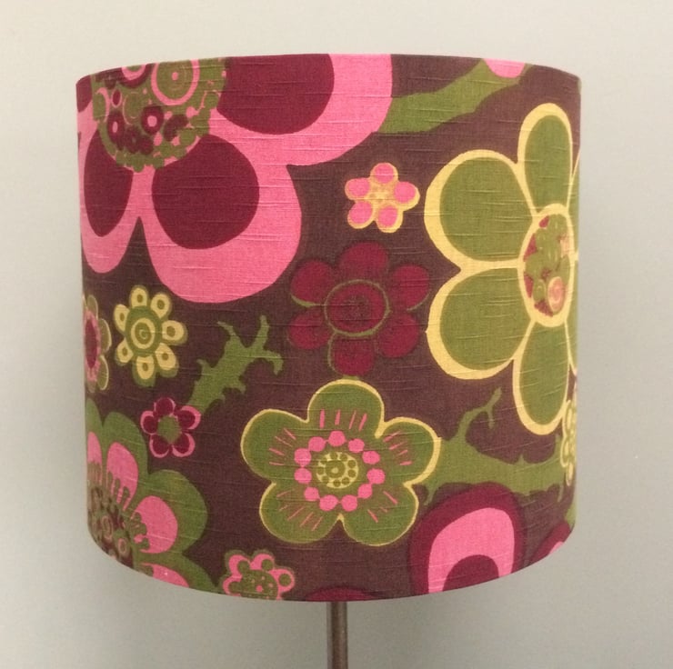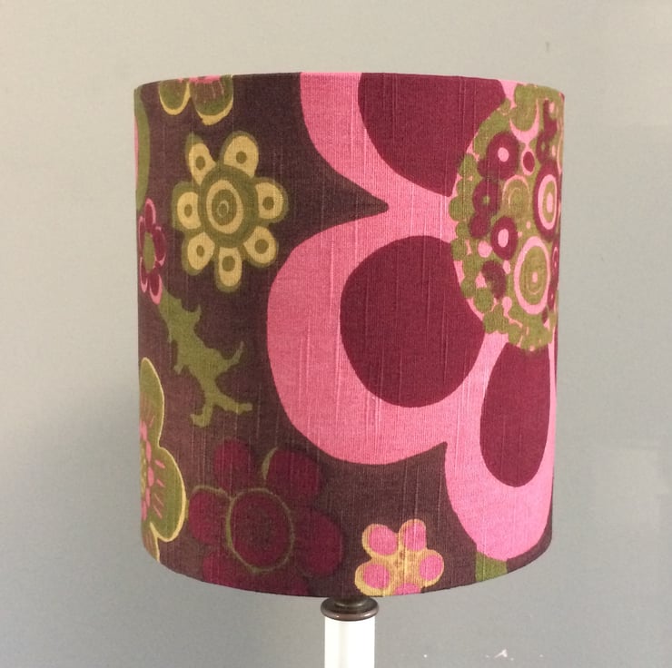 Funky Pink Brown DENISE Hippy Floral BORAs 60s 70s Vintage Fabric Lampshade , design by Ritva Wahlstrom - bold fabric for a lampshade in a modern or retro home.