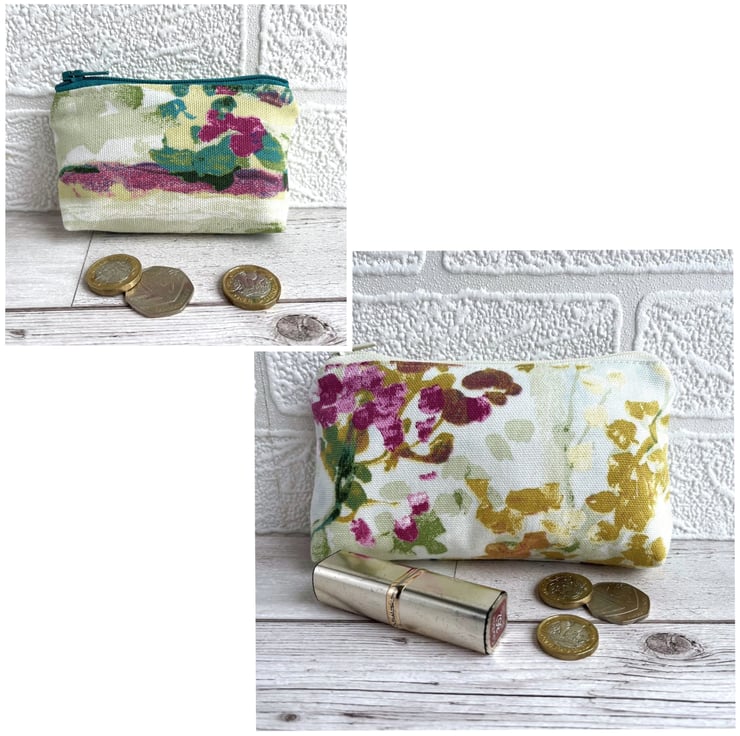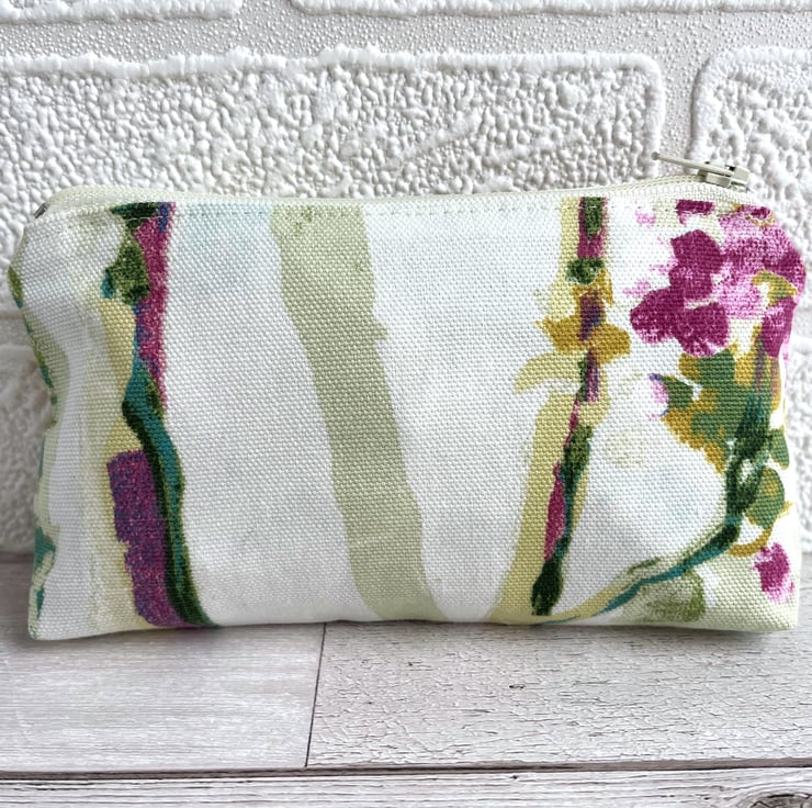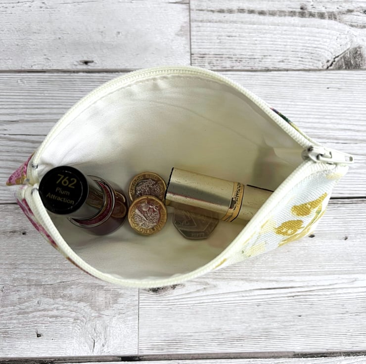 This large coin purse is large enough for bank cards and keys. It is also large enough to be used as a small make up bag or jewellery pouch. With its pretty and colourful print pattern, it would make a lovely gift.