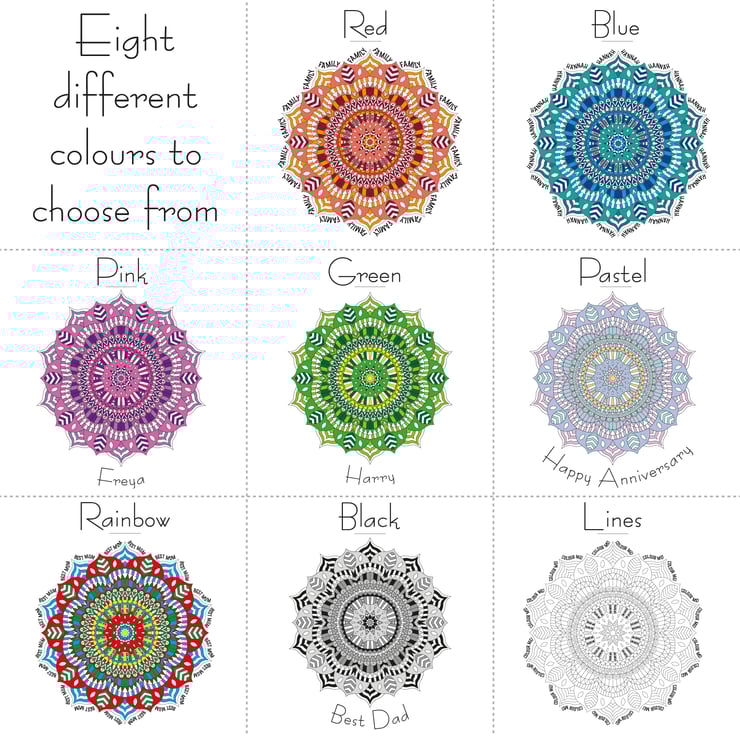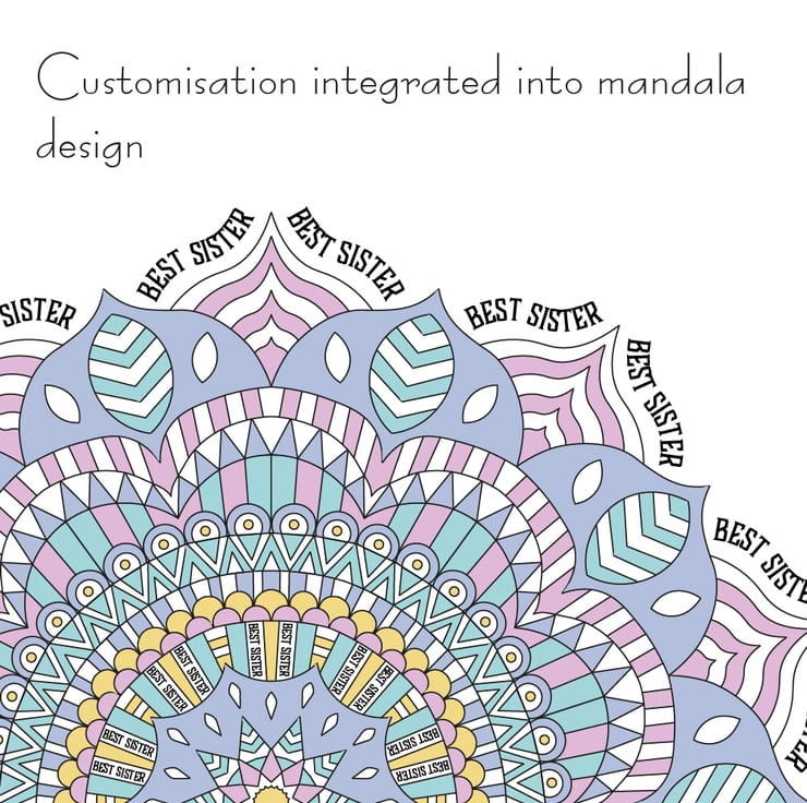 A5 andA4 print only available with personalisation underneath mandala design, A3 prints or larger will have personalisation incorporated into the mandala, unless specified.
