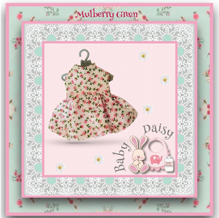 A pretty little pink flowered dress for baby Daisy. The dress is handmade from best quality cotton, has a lined bodice and fastens at the back with a little popper