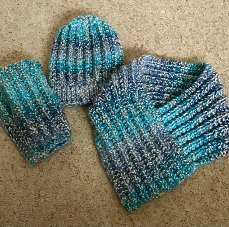 Warm and cosy Neck Warmer with matching Beanie or Bobble hat and Fingerless Mittens or Wrist Warmers. All can be purchased individually.