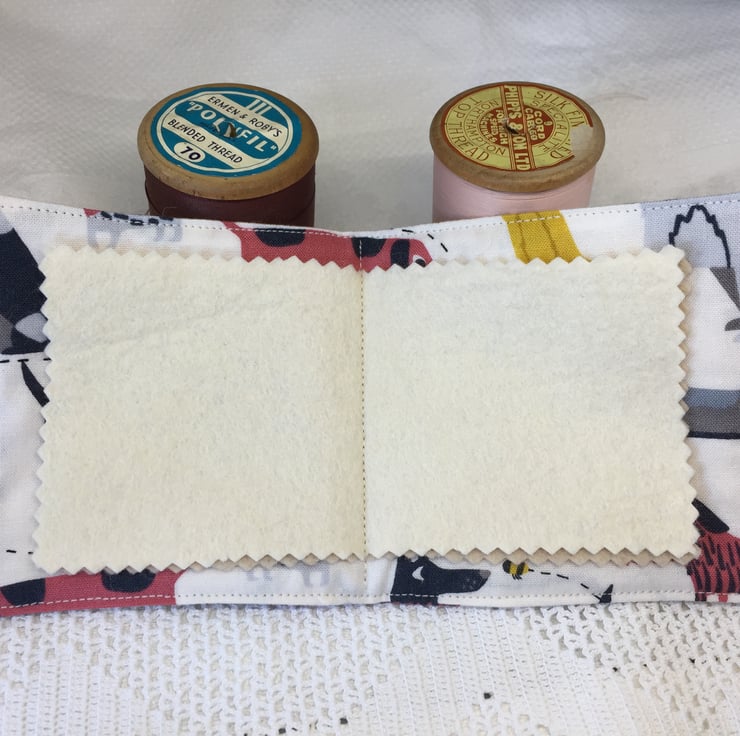 A simple, fun, needle case. Lightly padded with four felt pages.