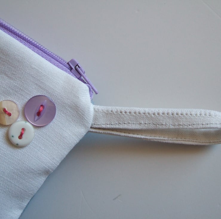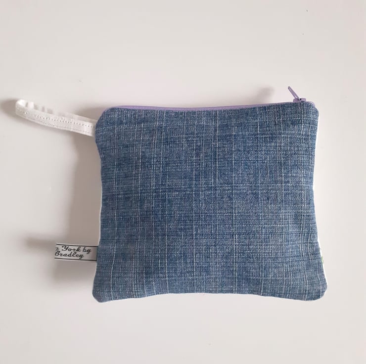 It measures 17cm by 14cm with a lilac, 17 cm zip .